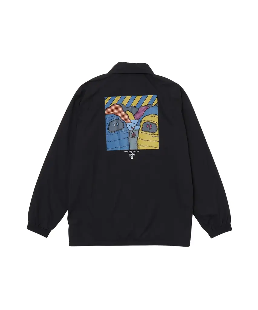 コラボレーションによるラインナップは全4型で、神山氏がアウトドアフィールドに想いを馳せて描いた作品をプロダクトに落とし込み、アートピースとしての側面と日常で使えるウェアやアクセサリーの両立を目指しています。各アイテムには神山氏の描くキャラクターや手描きのボックスロゴなど、手仕事の温度が伝わるディテールがアクセントとして配されています。