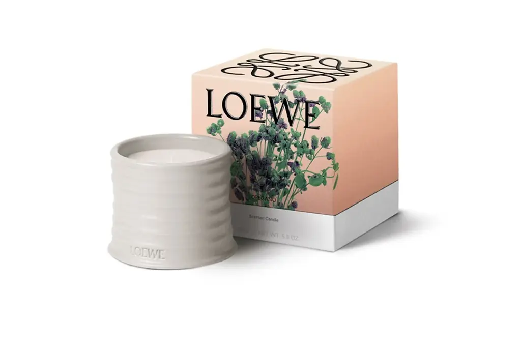 - ロエベ キャンドル オレガノ:S 税込14,300円 / M 税込34,100円 / L 税込78,100円。地中海のハーブ園を思わせる樹脂系の香りを持ち、火を灯すとウッディーでアンバーなノートが広がるテラコッタ容器入りキャンドル。