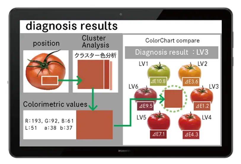 スマートフォンで作物を撮影するだけで、成長度合いや色味を客観的なデータとして判定できることが特徴です。経験や勘に左右されない品質評価を行うことで、栽培管理の最適化や作業の標準化につながるとされています。