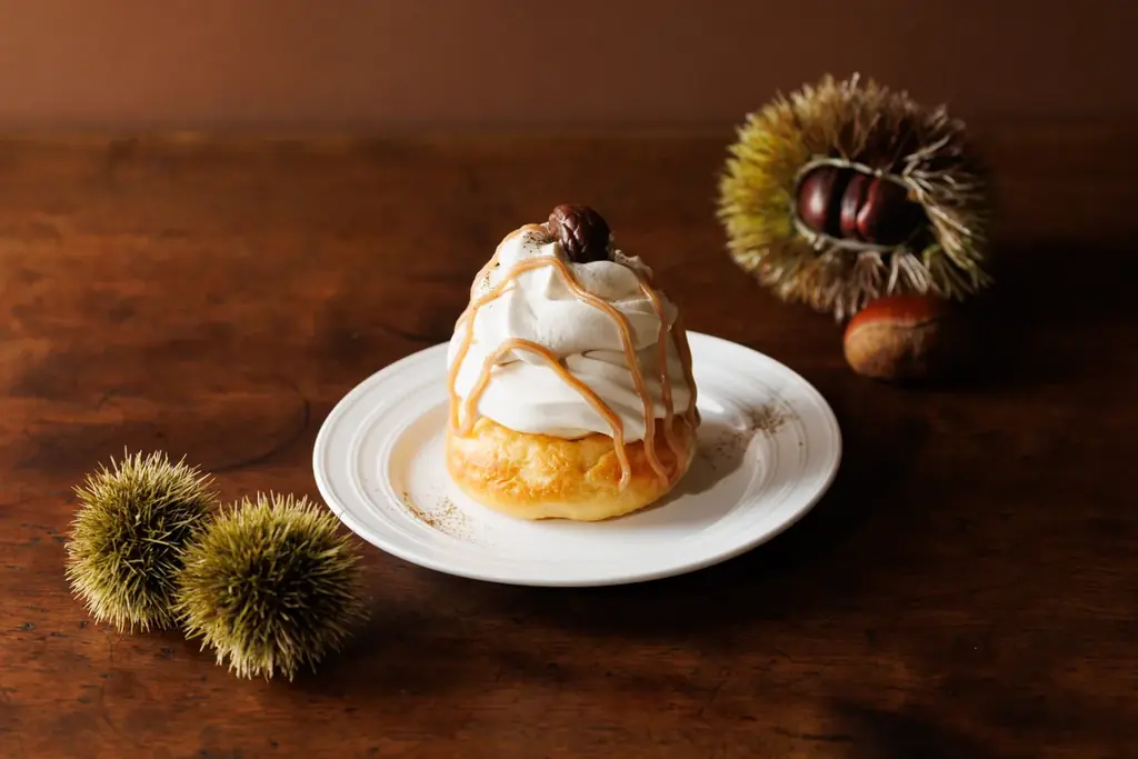 今回の栗フレーバーは、国産の栗を活用したマロングラッセをダイス状に仕立て、歯ごたえとしゃりっとした食感を残す形でバタークリームと合わせた点が大きな特長です。生地にはほうじ茶を練り込み、栗の風味と調和させることで秋らしい香りを強調しています。価格は1,080円(税込)です。