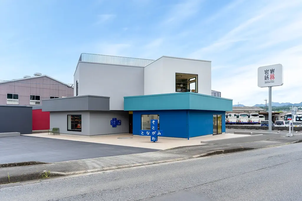 長崎県波佐見町でパッケージの企画・製造を行う総合メーカー、株式会社岩㟢紙器は、2025年9月19日(金)に複合施設「そとがわとなかみ」をオープンします。本施設は「積み上げられた貼り箱」を想起させる外観を持ち、完成したパッケージ(そとがわ)とその背景にある思いや技術(なかみ)をつなぐ場として設計されています。