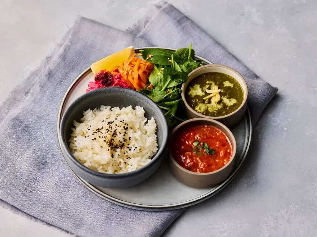 主なメニュー(例・価格) | 1種盛りランチプレート:¥1,180(税込)/2種盛りランチプレート:¥1,380(税込) Soyカスタードジェラートのアフォガート:¥680(税込)/桃まるごと果実氷:¥1,300(税込)/春の名残りイチゴのスムージー:¥1,350(税込) |