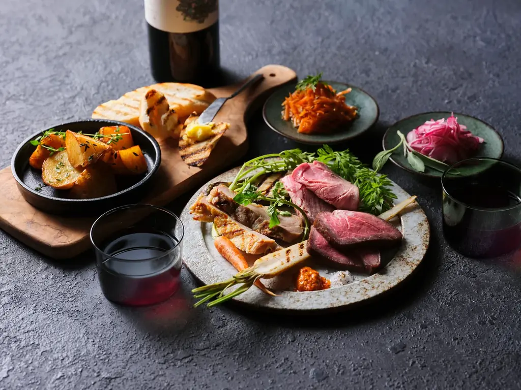 ディナーはビストロスタイルで、小皿料理から魚・肉料理のしっかりしたメインまで幅広く揃えます。素材の良さをシンプルに引き出す調理を心がけ、締めのデザートにはZEROCOで鮮度や甘さが保持された旬の果物を用いた品が並びます。