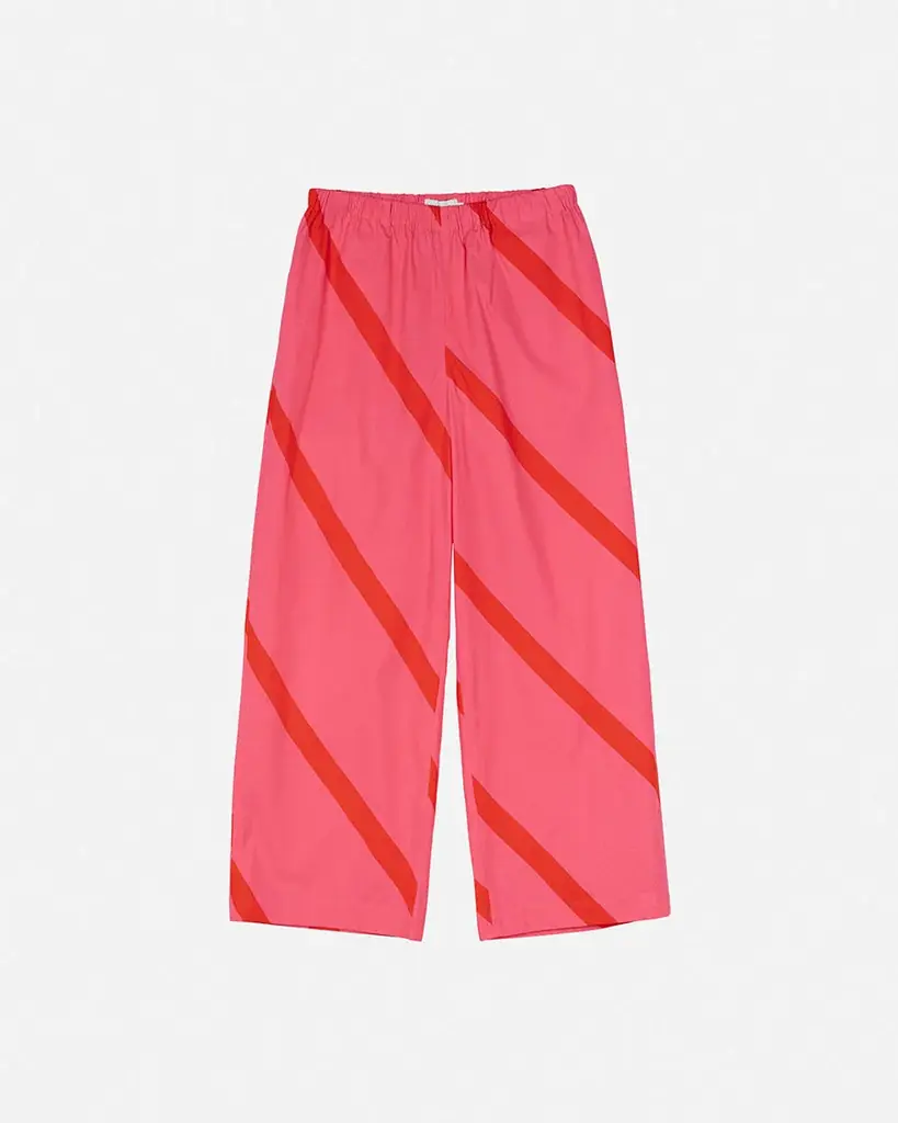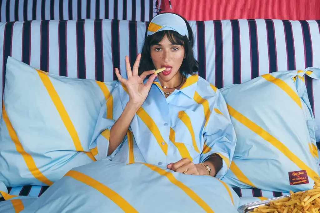 今回のコラボレーションでは、彼女のもつ視覚的・感覚的なアプローチがマリメッコのプリントと融合し、寝室で過ごす時間をアートとして捉え直すようなアイテムが揃えられています。色使いとストライプの遊びが、日常の緩やかな時間を豊かにする設計になっています。