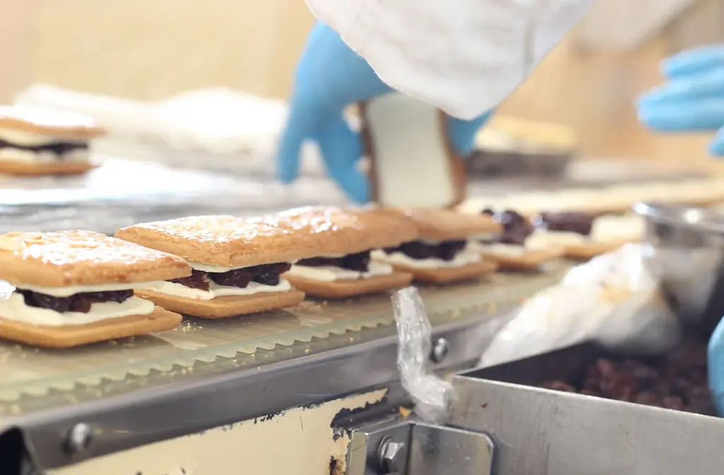 製造面では毎日平均10,000~11,000個を生産しており、鎌倉ビスケの枚数に換算すると1日20,000枚以上を焼いています。卵塗りやアーモンドを乗せる作業、レーズンのサンドは人の手による工程が中心で、機械は補助的に用いられるに留めています。不揃いな形は手作りの証として残し、ハンドメイドの温もりを届けています。