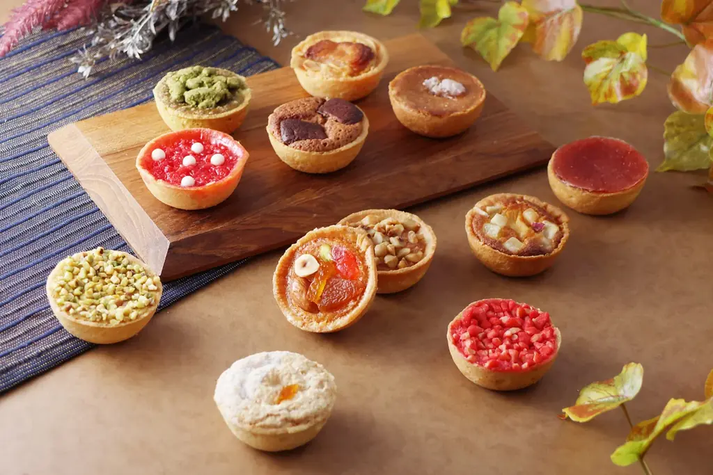 - タルトレット(Tartlette):しっとりしたタルト生地にマドレーヌやフィナンシェなどを組み合わせ、季節のフルーツやナッツで仕上げた一品。箱を開けたときの見栄えにも配慮。価格は3個入り¥1,188、6個入り¥2,268、9個入り¥3,240、12個入り¥4,320、16個入り¥5,724(税込)。