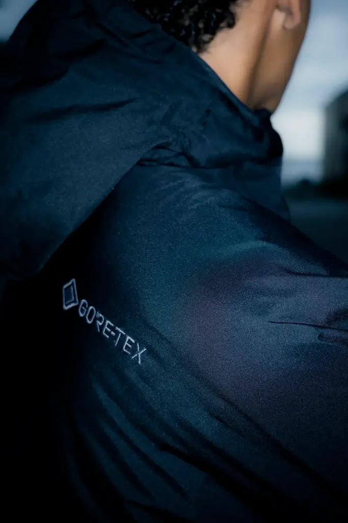 このジャケットは高い防水性・透湿性を備えた素材を採用しつつ、環境配慮も取り入れた仕様になっています。アウトドアで求められる基本性能を備えつつ、都市生活での快適性も重視されています。