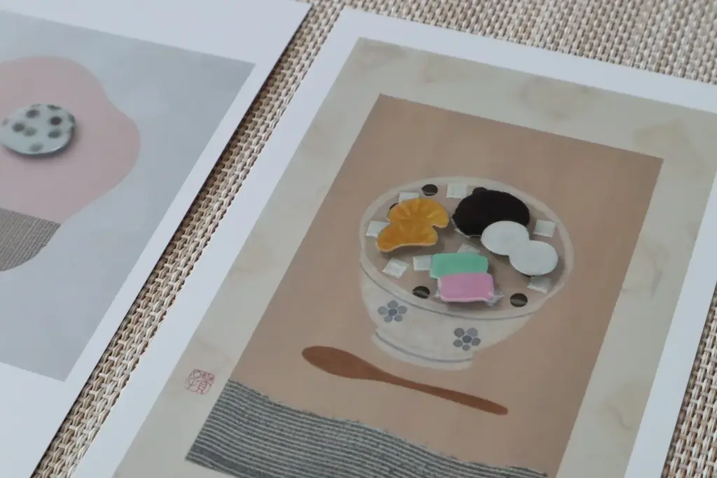 会場では、果物や野菜、魚などをモチーフにした七宝×日本画の作品を10点以上展示・販売します。展示作品は七宝で造形した対象の前景に、日本画の画材である岩絵具を用いた背景を合わせるなど、素材と色味の対話が意図されています。