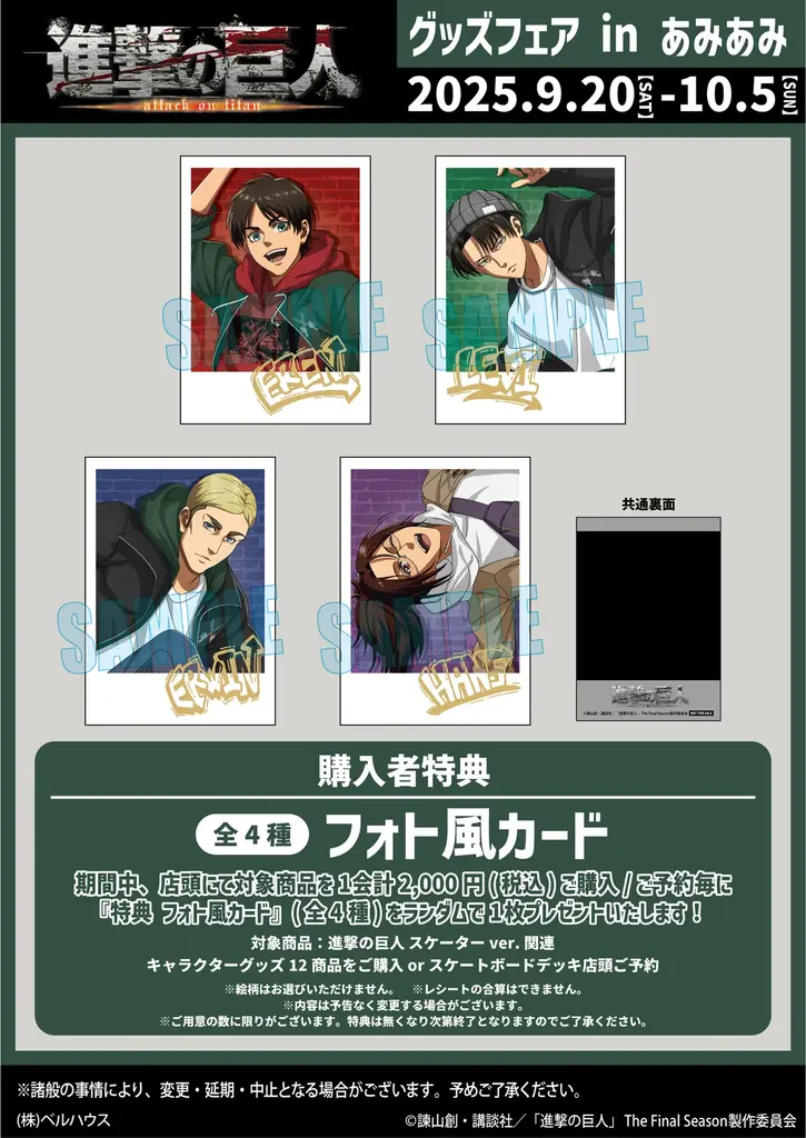 9/20開始|進撃の巨人×あみあみ スケボー絵柄グッズ展