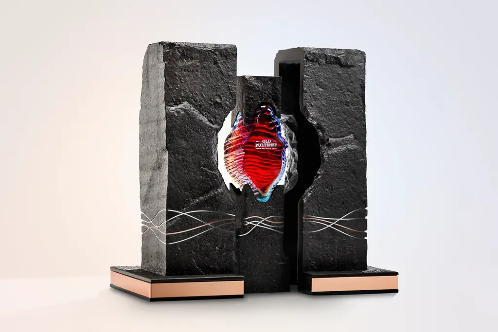 外装はノースストーン社(Norse Stone)によるケイスネススレート製で、地元ジュエラーが銅と銀を組み合わせた装飾を加えています。台座には蒸溜所でかつて使用されたポットスチルから回収した銅板を組み込み、製造過程や蒸溜所の歴史が物理的に結び付けられています。