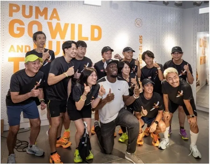 同じく9月12日夜、プーマストア 原宿キャットストリートで消費者向けイベント「PUMA GO WILD RUN TOKYO」が行われ、ウサイン・ボルト氏が登場した。会場には抽選で選ばれたファンや陸上競技のファンが集まり、トークセッションとその後の試走イベントが催された。