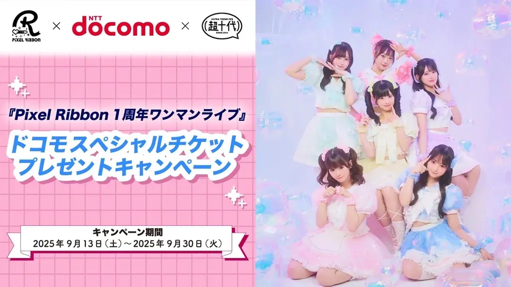 株式会社超十代は、株式会社NTTドコモとのコラボレーションにより、アイドルグループPixel Ribbonのデビュー1周年を記念したキャンペーンを実施します。本稿ではキャンペーンの対象、応募方法、特典の内容、ライブ開催情報、並びに主催者情報まで、プレスリリースに記載された全ての情報を漏れなく整理してお伝えします。