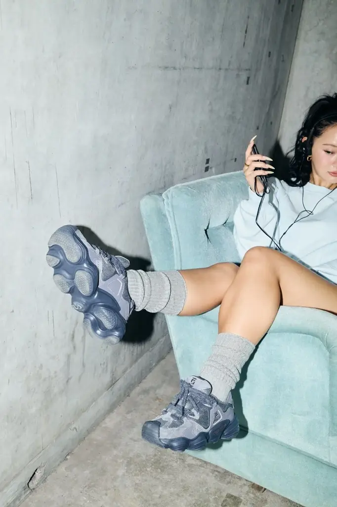 FILA×HTH sneakers | gray, charcoal系 | 23〜28cm | ¥17,900 | 厚底ソール、メッシュ×スエード、取り外し可能チャーム |