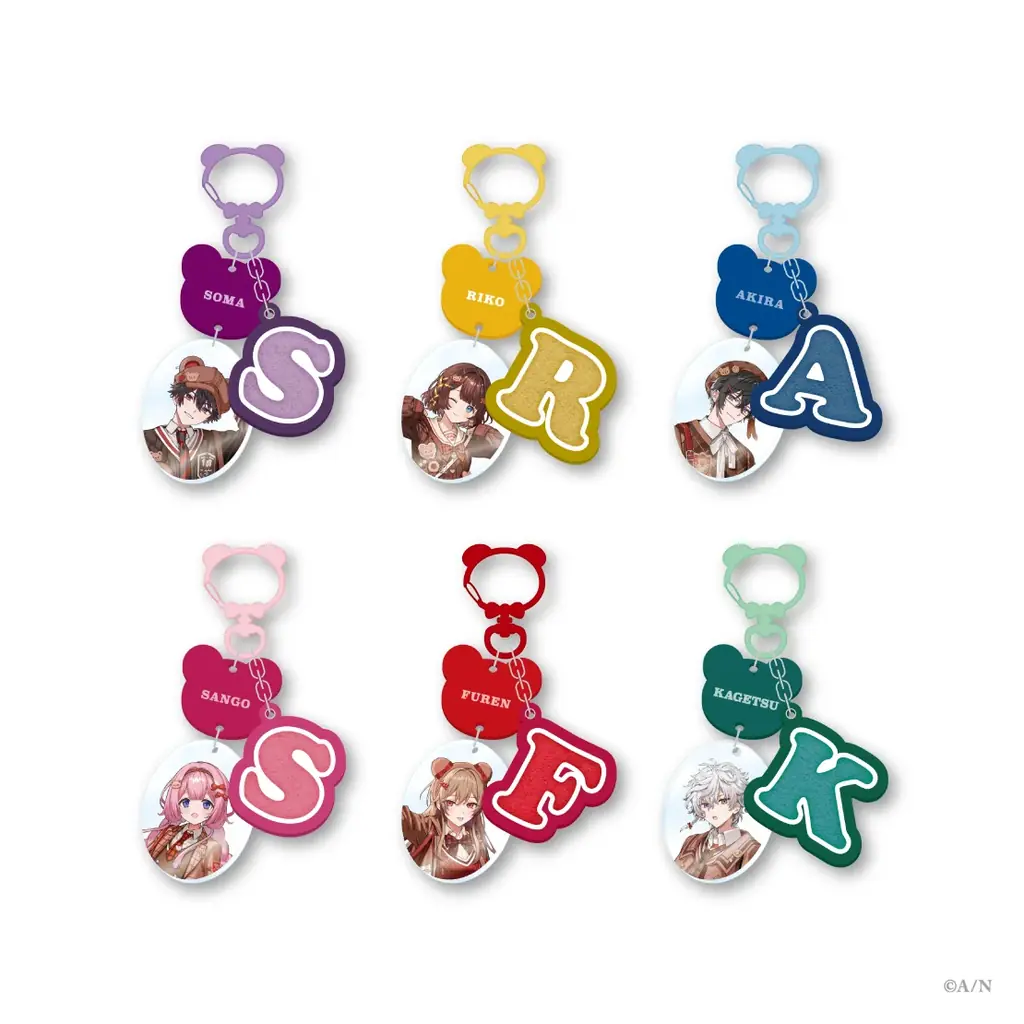 サイズ(約):全長 H110mm、ビジュアルアクリルチャーム W35mm×H45mm以内、モチーフアクリルチャーム W35mm×H35mm以内、刺繍チャーム W45mm×H45mm以内(ライバーにより異なる)/素材:アクリル、ポリエステル、合金、鉄