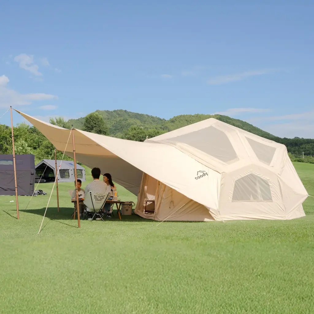 coodyの新作である「BESTOBA」は大型でラグジュアリーなエアテントとして設計されています。キャンプサイトでの存在感が高く、広い居住空間を確保することを目的としたモデルです。