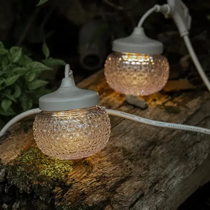 「GLOWNA」は16通りの光演出と個別コントロール機能を備えたパーティライトです。IP67防水仕様で専用ファンに対応しており、アウトドアだけでなく庭やリビング、店舗装飾にも利用できます。季節を問わず利用できる設計が特徴です。