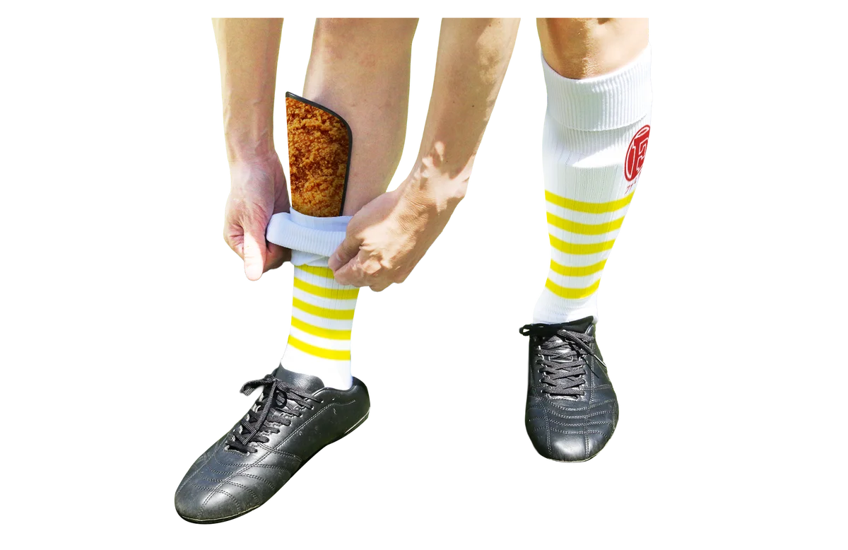 - 必要スタンプ:3個 / 当選人数:100人。デザイン性の高いすね当てとソックスのセット。