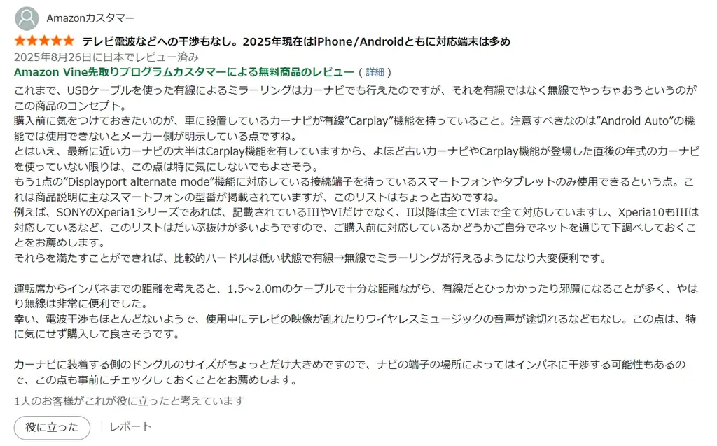 発売以降、Amazon上には高評価のレビューが多数寄せられており、代表的な評価として「接続が簡単」「CarPlayの無線化で快適」「映像がきれい」「通勤での使い勝手が良い」といった声がプレスリリースで紹介されています。実際の評価内容は購入前にAmazonの商品ページ上のレビューも確認することが望ましいです。