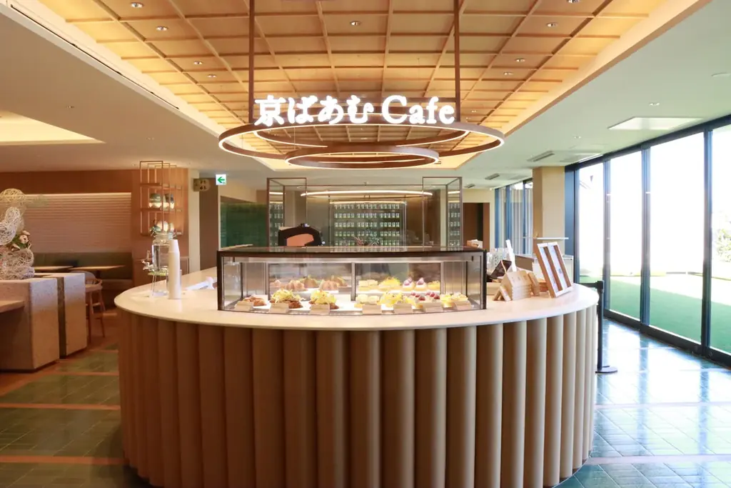 atelier京ばあむは2023年11月に京都市南区にオープンした施設で、ショップ・工場・カフェを併設しています。施設全体で「京都」「抹茶」「バームクーヘン」を感じられる仕掛けが盛り込まれており、製造風景を見学できる通路など、来訪者が製菓の工程に触れられる設計です。