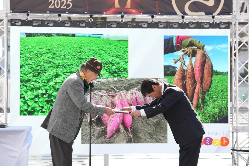 受賞者および受賞さつまいもは、さつまいも博2026のメインステージで表彰式が行われ、注目度の高い場で栄誉を讃えられることになります。表彰の舞台は、冬では初の幕張メッセで、過去最大規模での開催が予定されています(写真は「さつまいも博2025」表彰式のもの)。