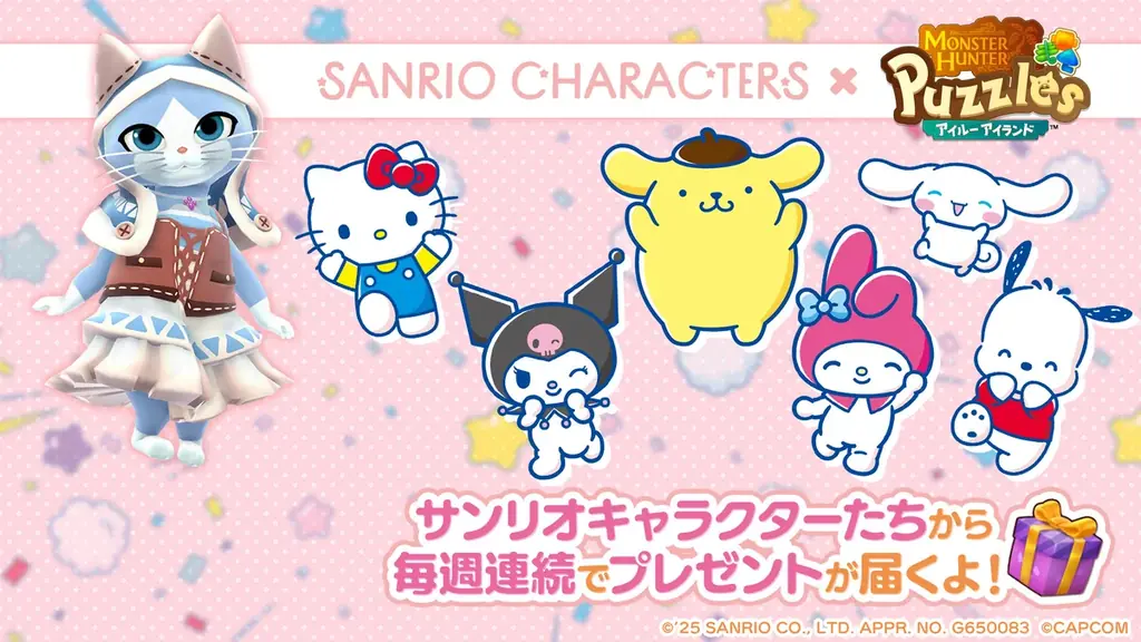 株式会社カプコンは、2025年9月16日(火)12時00分に発表したプレスリリースにおいて、スマートフォン向けゲームアプリ『モンスターハンターパズル アイルーアイランド』にて、『サンリオキャラクターズ』から毎週プレゼントが届くコラボイベントの開催を公表しました。