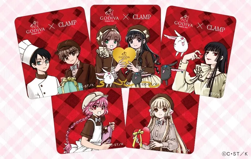 本コラボレーションでは、CLAMPが本企画のために描き下ろした限定ビジュアルを採用。ゴディバショップの制服をイメージしたコスチュームで、作品の枠を超えて人気キャラクターたちが集合するデザインが用いられています。©C・ST/K の表記とともに、世代を超えたキャラクターの共演が商品ラインナップの主軸となります。