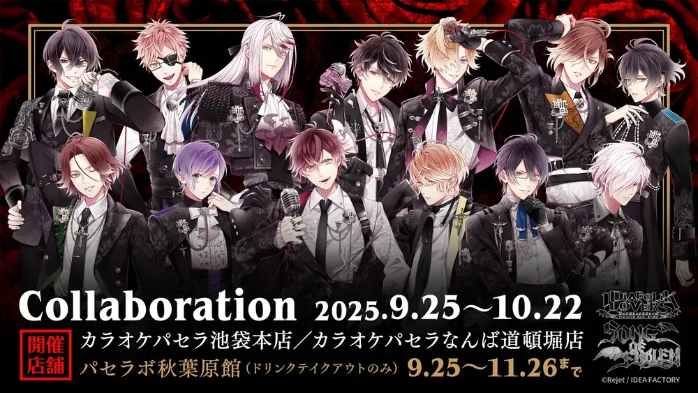 株式会社NSグループは、2025年9月16日12時00分に発表したリリースにて、人気女性向けコンテンツ「DIABOLIK LOVERS」シリーズの新作CD「SONG OF EMBLEM」発売を記念したカラオケパセラとのコラボレーション開催を発表しました。開催期間は2025年9月25日(木)から2025年10月22日(水)までで、パセラボ秋葉原館においてはドリンクのテイクアウトについて2025年11月26日(火)までの取り扱い延長があります。