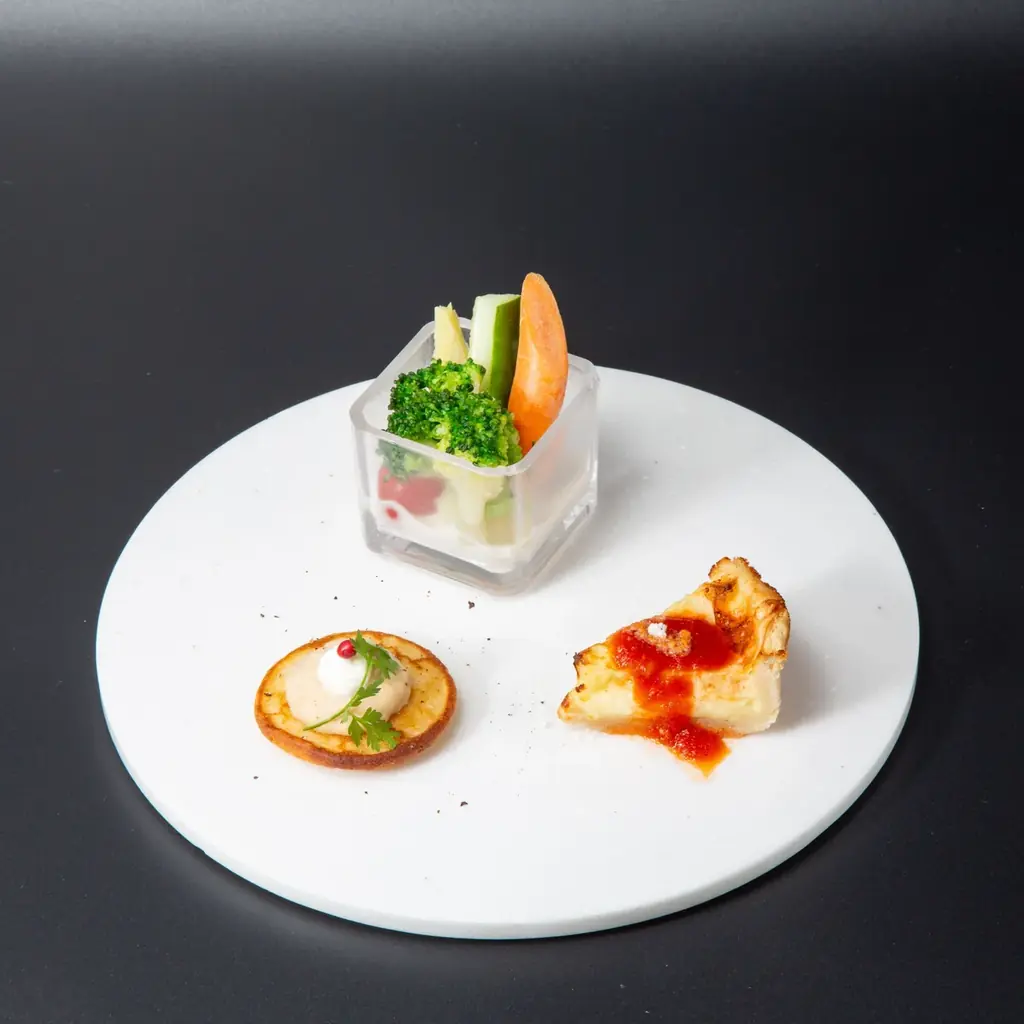 各アフタヌーンティーは上段(スイーツ)と下段(セイボリー)で構成されています。下段のセイボリーは全種共通で、キッシュ・ツナのブリニ・バーニャカウダが含まれます。ドリンクのテイクアウト販売はパセラボ秋葉原館のみで、プラカップでの提供となります。
