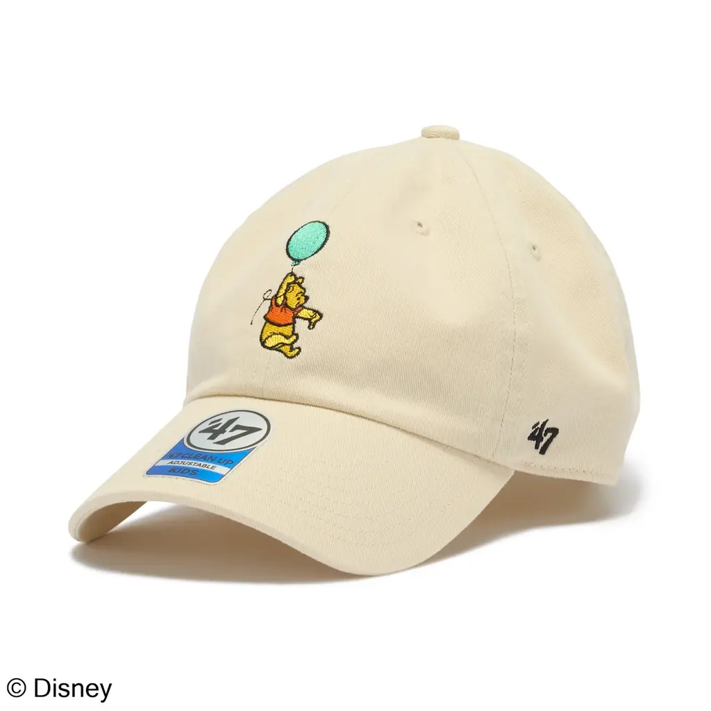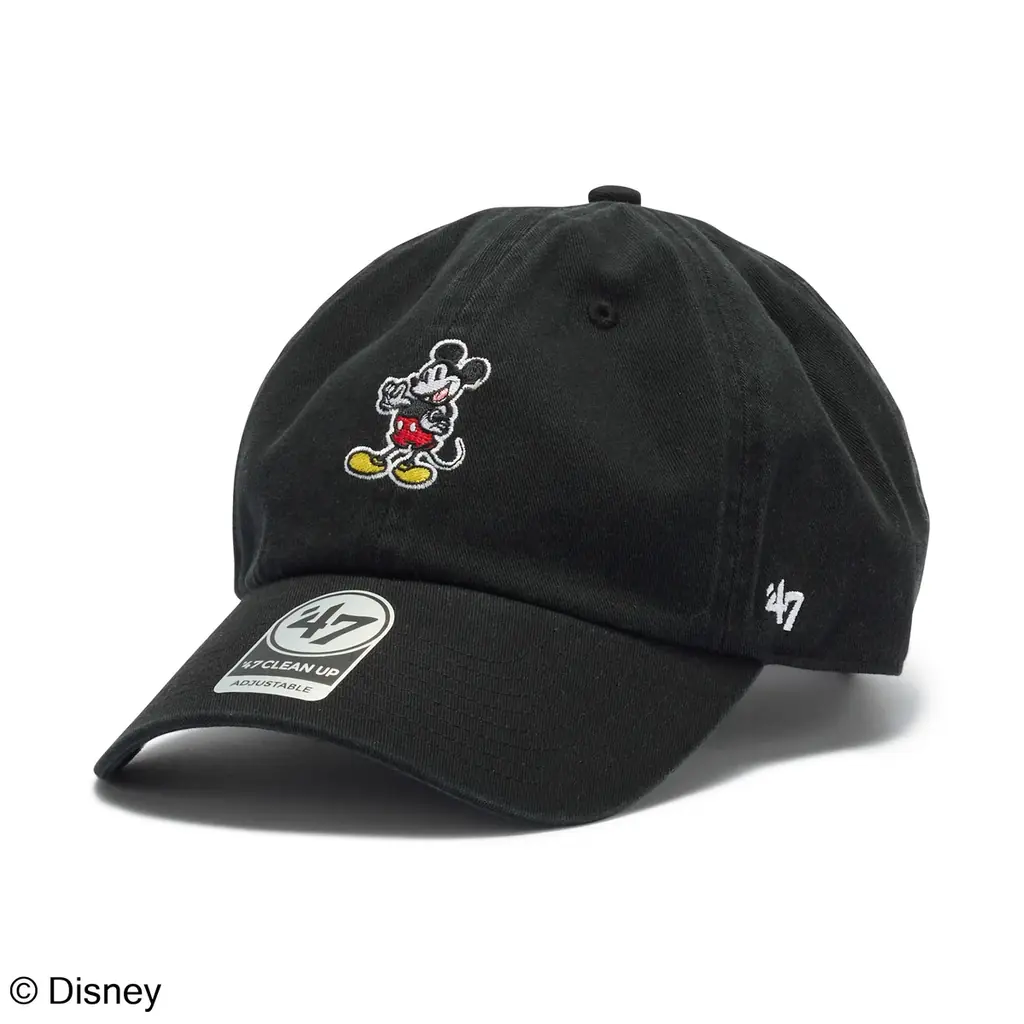 発表によれば、ラインナップは大人向けのスタンダードモデルを中心に、キッズサイズも含めた展開とされています。型番やモデル名としては、’47の定番ラインである〈CLEAN UP(クリーンナップ)〉、〈MVP(エムブイピー)〉、〈HITCH(ヒッチ)〉などが用いられ、それぞれディズニーのキャラクターモチーフをあしらったデザインで提供されます。
