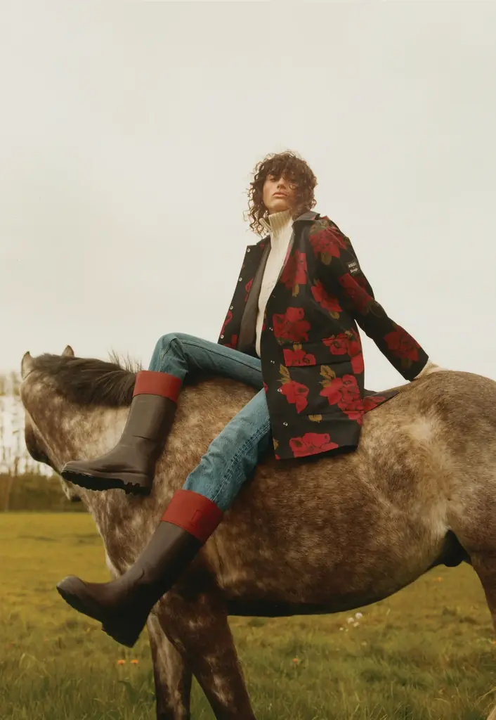 本コレクションは、AIGLEが積み上げてきたアウトドアウェアの技術と、Rougeが表現するパリ的な美意識を融合させたもので、日常の様々な場面で機能性と女性らしさを両立させることを主眼に置いています。黒地に映える赤いフラワープリントを軸に、レインコート、ハット、トートバッグ、そしてフランス製のラバーブーツといった幅広いアイテムがラインナップされます。