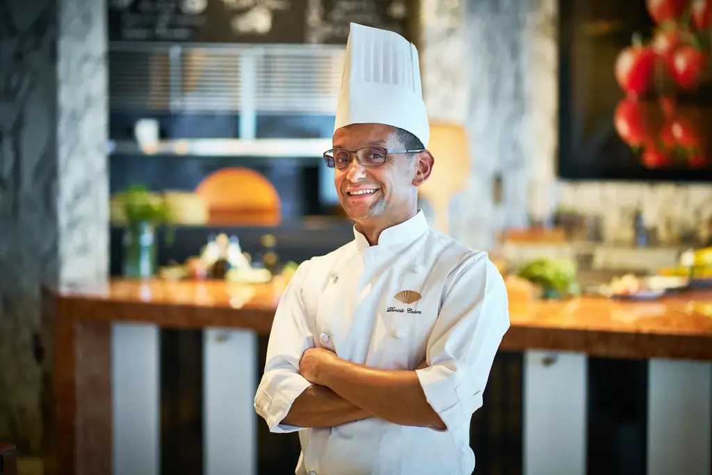 エグゼクティブシェフのダニエレ・カーソンはイタリア・ローマ出身で、2016年に同ホテルのエグゼクティブシェフに就任しました。父の影響で14歳から料理に関心を持ち、2003年にローマの5つ星ホテルでキャリアを開始。ラ・ペルゴラで技術を磨いた後、カイロとバンコクのフォーシーズンズホテルで経験を積んでいます。2013年には同ホテルのエグゼクティブ スーシェフに就任し、以後ホテルの食文化を築く中心的存在となりました。