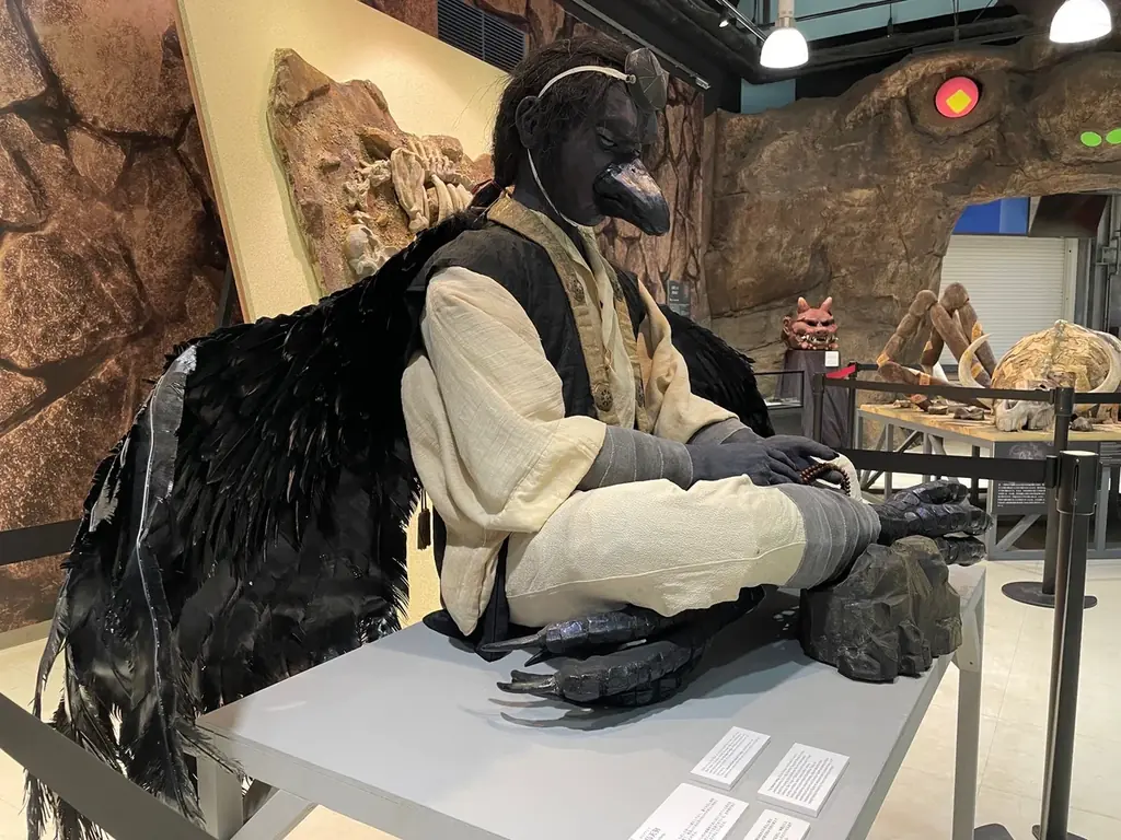 第一のスペースは「妖怪博物館」。烏天狗などの迫力ある造形、伝承と結びついた作品群が並びます。京都芸術大学の卒業制作で学長賞を受賞した紫霞(しか)氏の作品も特別展示され、展示期間は2025年9月13日(土)〜10月26日(日)です。