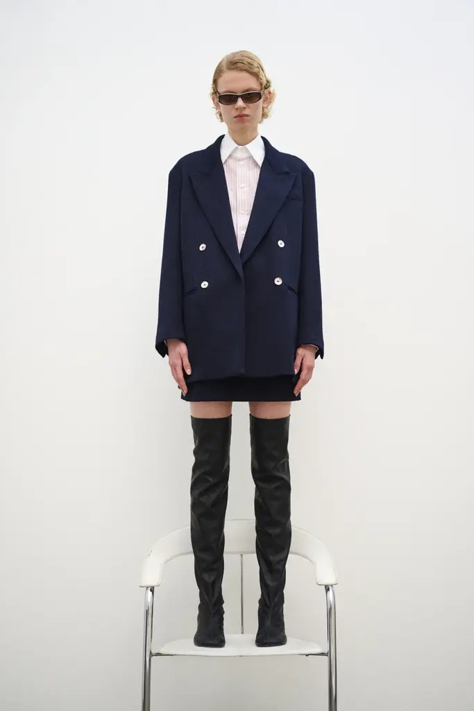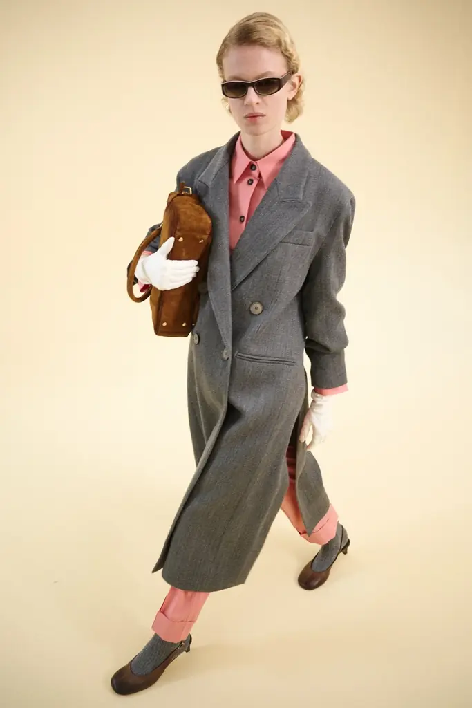 また、スカートにはブランドアイコンであるプリーツが引き続き登場する一方で、シルエットの新たな変化も取り入れられています。ブレザーはセットアップとしての統一感だけでなく、単品使いによるコーディネートの自由度も考慮された設計です。