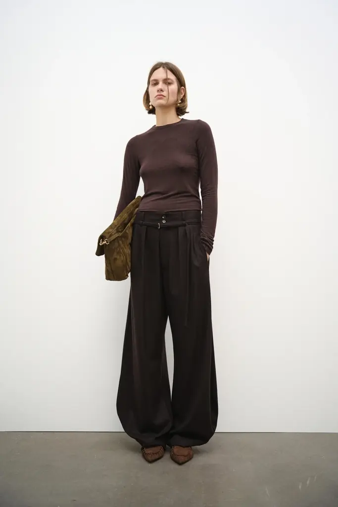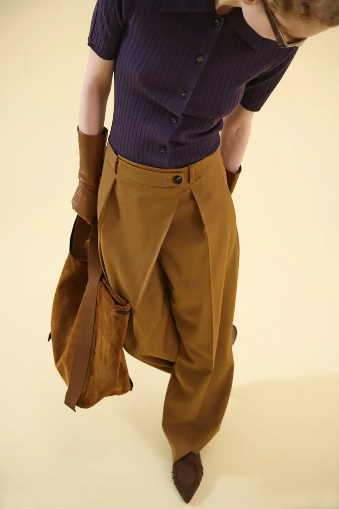 クリエイティブディレクターのFederica Mora(フェデリカ・モラ)は、Max MaraやCERRUTIでの経験を経て2010年にTELAを設立。マニッシュなテーラリングとリラックステーラリングを融合させる設計意図が、今季の“NEW SILHOUETTES”というテーマに反映されています。