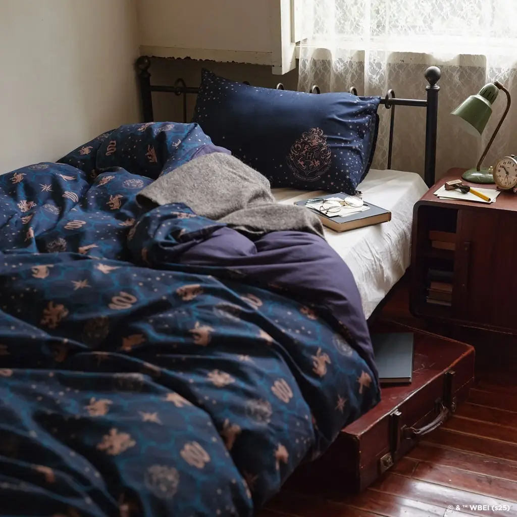 デザイン面では、原作・映画の象徴的な要素を取り入れつつ、日常使いしやすい仕様に仕上げられています。深みのあるネイビーにゴールドの寮章を配したアイテムは落ち着いた高級感を演出し、インテリアの差し色となるピンクトーンのアイテムは『ハリー・ポッターと不死鳥の騎士団』に登場したドローレス・アンブリッジを連想させる色づかいです。