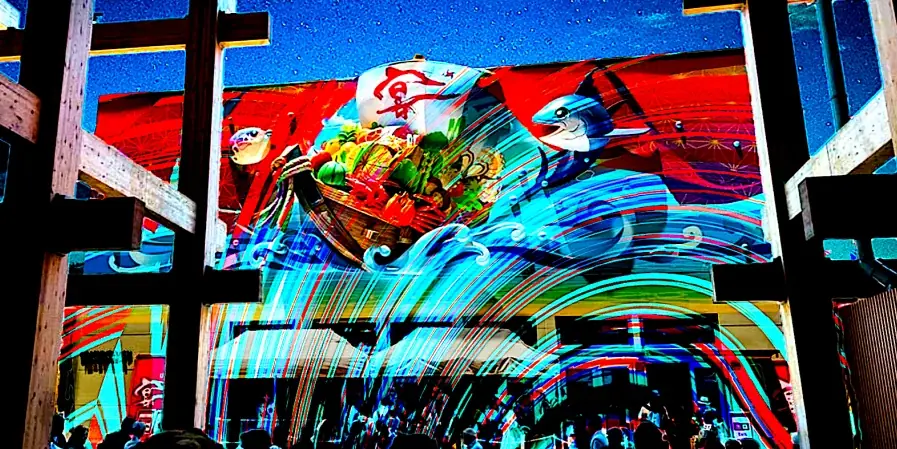 会場周辺にはORA外食パビリオン『宴~UTAGE~』などの飲食スペースもあり、食とアートを組み合わせた体験の提供が意図されています。食文化をテーマにした映像表現があることから、コンテンツとしての一貫性が保たれている点も特徴です。