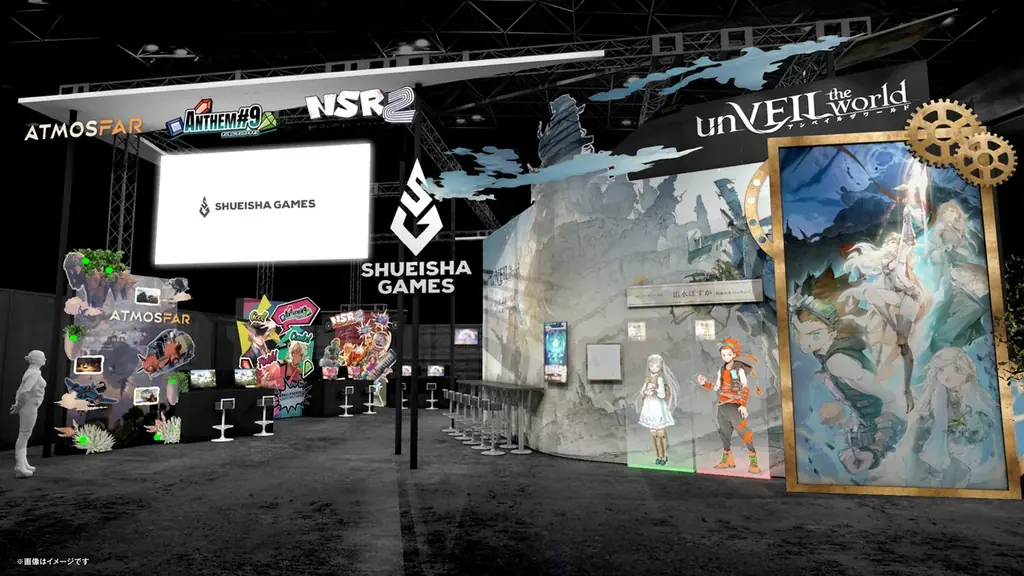 集英社ゲームズのブースは『OPUS: Prism Peak』と『unVEIL the world -アンベイル ザ ワールド-』をメインに据えつつ、他タイトルの試遊コーナーも併設する構成です。『OPUS: Prism Peak』は日本でのイベント体験デモが初出展となるため、注目度が高い展示となります。