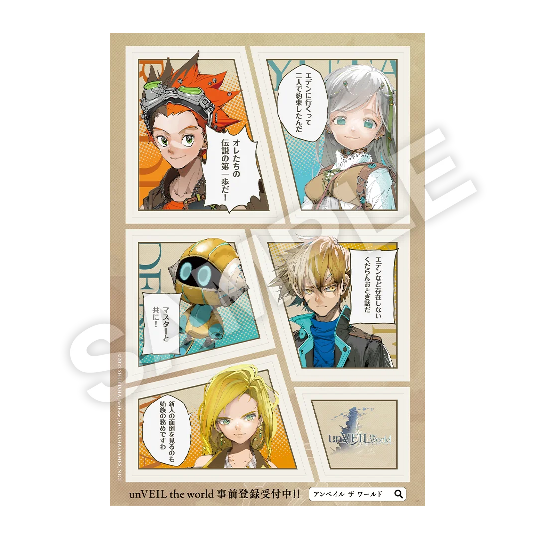 ノベルティ配布条件(例) | ・Steamウィッシュリスト登録/・集英社ゲームズ【公式】-NEWS-フォロー/・試遊 (unVEILはApp Store/Google Play事前登録、公式フォロー、試遊のいずれかで配布) |