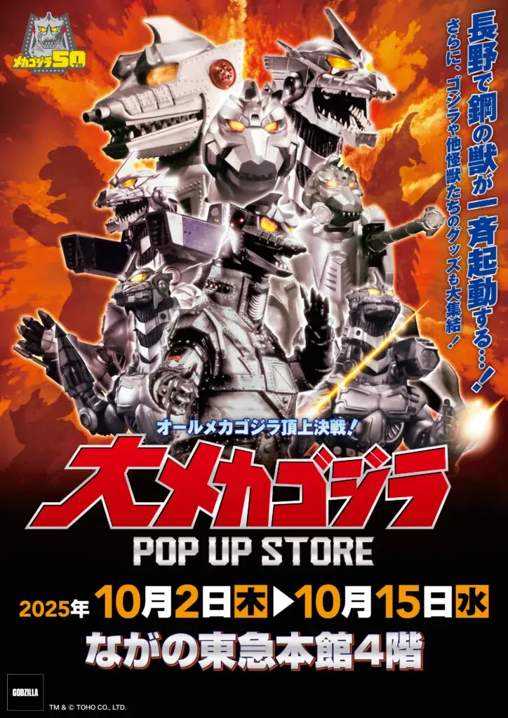 株式会社クレイジーバンプは、2025年10月2日(木)から2025年10月15日(水)まで、ながの東急本館4階にて〈大メカゴジラPOP UP STORE in 長野〉を開催します。本催事は、1974年の『ゴジラ対メカゴジラ』で初登場して以来、シリーズを象徴する存在となったメカゴジラの登場から50年を記念したポップアップストアです。