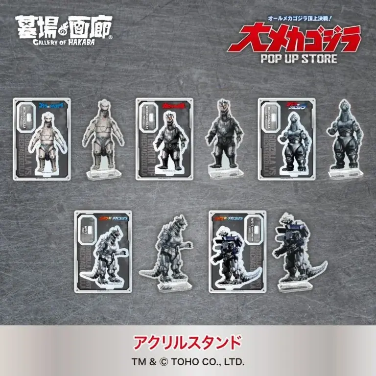 アクリルスタンドやメタルキーホルダーといったアイテムは、ディスプレイ性・保存性を意識した仕様になっています。スーパーメカゴジラは他と比べて大きめのサイズ設定です。