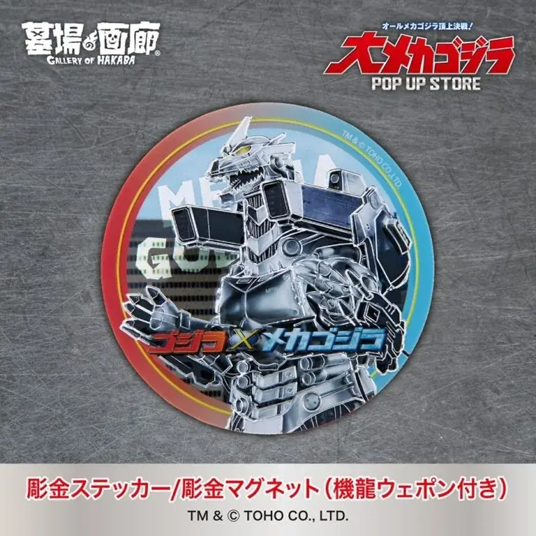 メカゴジラは、鋼色の全身メカ、豊富な武装、そして倒されるたびに修復・改良を重ねて立ち上がるという設定から、ゴジラシリーズにおいて特別な存在感を持ち続けています。本催事では、初代メカゴジラからスーパーメカゴジラ、3式機龍(機龍や重武装型・高機動型を含む)まで、さまざまな歴代メカゴジラの要素を集めた公式グッズやアパレルが販売されます。