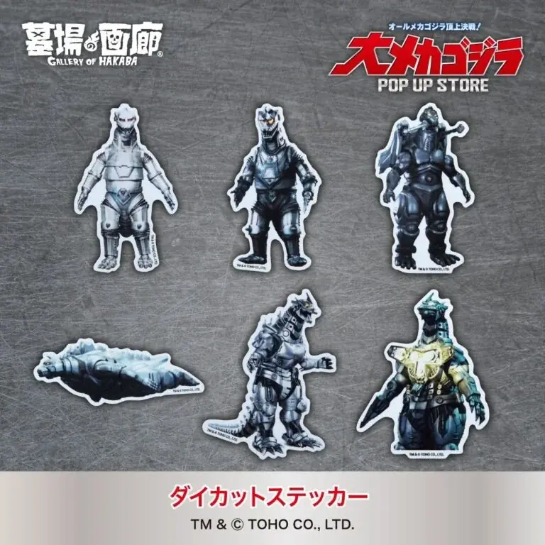 ダイカットステッカー(6種:メカゴジラ1974・1975・1993、スーパーメカゴジラ1993、3式機龍2002・高機動型) | 各440円 | 各種サイズあり(概ねW46mm~W91mm、H26mm~H85mm) |