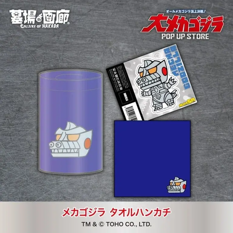 メカゴジラ タオルハンカチ | 1,650円 | タオル:W20cm×H20cm | 刺繍のワンポイントとステッカー付き |