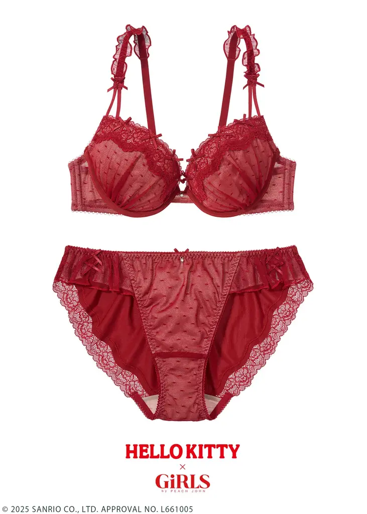 株式会社ピーチ・ジョン(本社:東京都港区/代表取締役社長:西澤 恒地)が展開する妹ブランド、GiRLS by PEACH JOHN(ガールズ バイ ピーチ・ジョン)は、サンリオの『HELLO KITTY(ハローキティ)』とのコラボレーションコレクションを発表しました。本コレクションは、ハローキティの愛らしさをクラシカルなモチーフで表現したデザインが特徴で、レトロな赤色、ドット、リボン、チュールなどの要素を取り入れたラインナップとなっています。