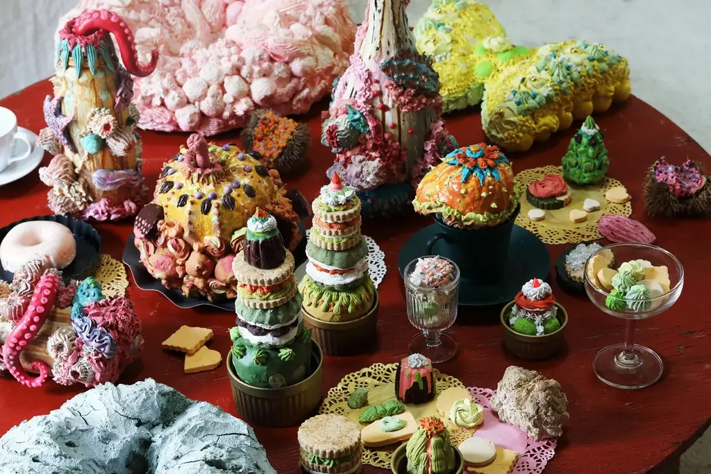 企画展3「目と感覚でお菓子を味わう~日々を彩るパティスリー marimo ~」はart squareで開催される来場者参加型の展示です。アーティスト吉田マリモ氏が架空のパティスリーになりきり、立体で触れて遊べるインタラクティブな作品群を展開します。作品には撮影や触覚的な参加、あるいは作品の上に乗るなど直接的に体験できる要素が含まれます。