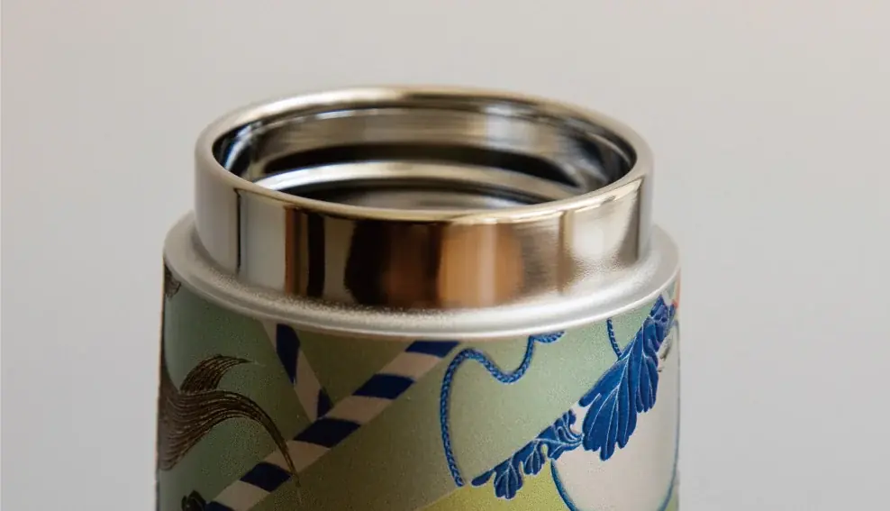 MJX-B481の最大の特徴は、絵柄に合わせた立体的な表面加工による「色味と手触りの再現」です。タイガー魔法瓶独自の塗装技術を用いて、凹凸のある立体的な色柄と手触りをボトル表面に付与しています。