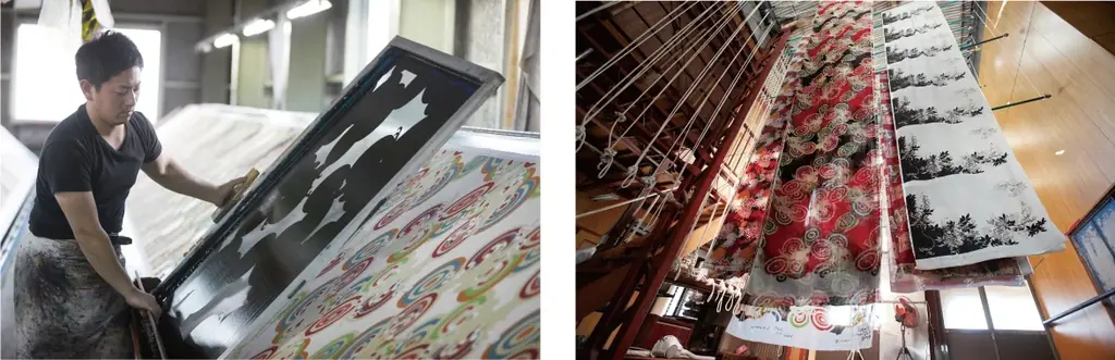 染物の織りや金箔のような質感まで、モチーフが本来持つ質感に近づけるために、絵柄ごとに重ね方を変える手法を採用しています。この重ね塗りとテクスチャー制御は、同社が「かさね」と称する独自技術の要となる部分です。