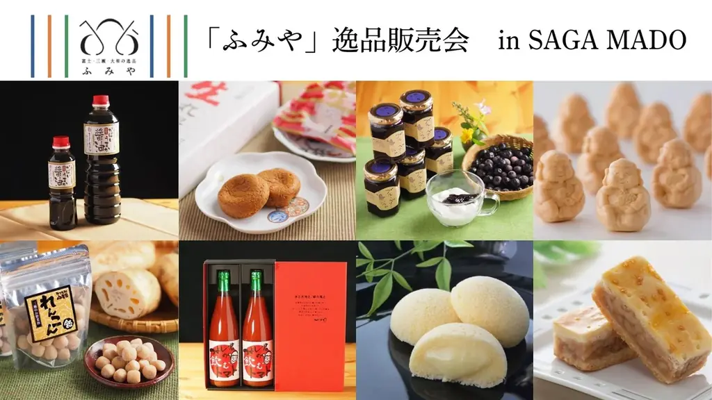 今回の販売会には、地域ブランド『ふみや』認定の事業所8社が出展し、富士・三瀬・大和の“三地域”の特産を活かした食品・菓子・加工品など21点を展示・販売します。会場はSAGA MADO特設エリア(佐賀市駅前中央一丁目4番17号 コムボックス佐賀駅前1階)です。