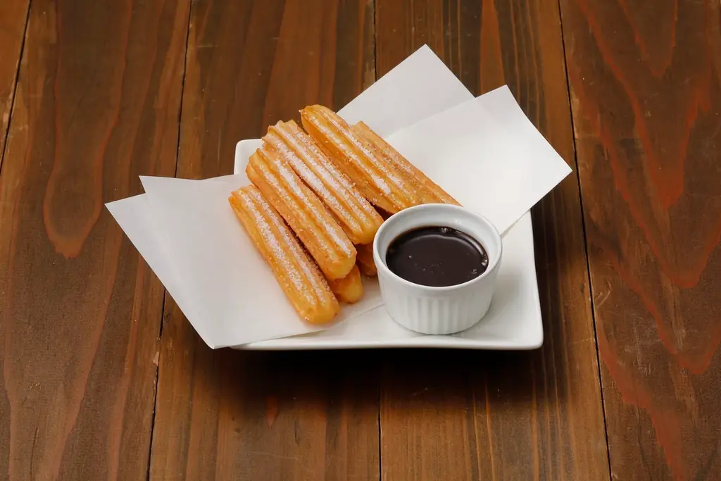 - メイプルシュガーチュロ~ホットチョコソース添え~:鳥貴族オリジナルのチュロが増量して復刻。外はサクサク、中はふんわりもちもち。メイプルシュガーをまぶし、ホットチョコソースを添えて提供。お酒との相性も想定されたデザート。