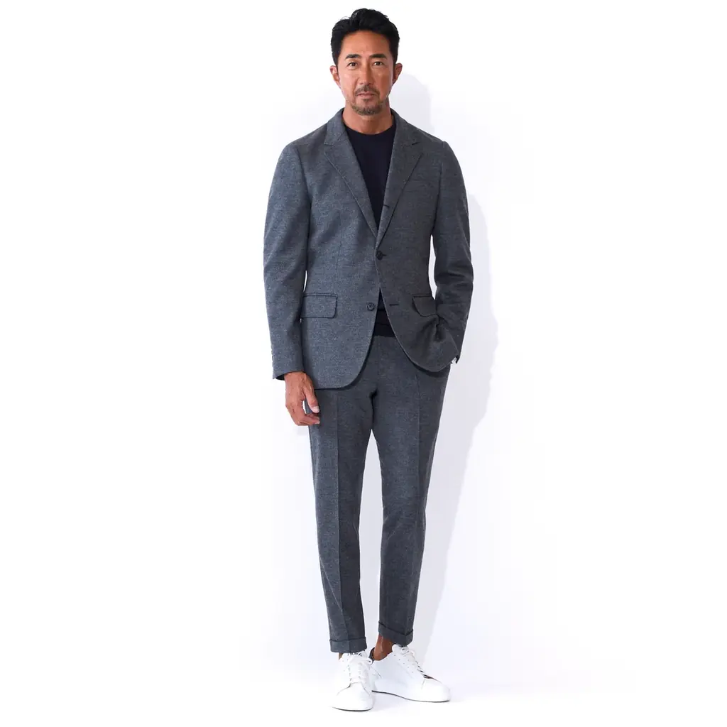 セットアップはこれまでにないグレーカラーを基調にし、細めシルエットはスマートで洗練された印象を、緩めシルエットはリラックス感と現代的な余裕のある佇まいを表現します。両タイプとも単品使いでも着回しが効きやすい設計となっており、ビジネスシーンからカジュアルまで幅広く対応します。
